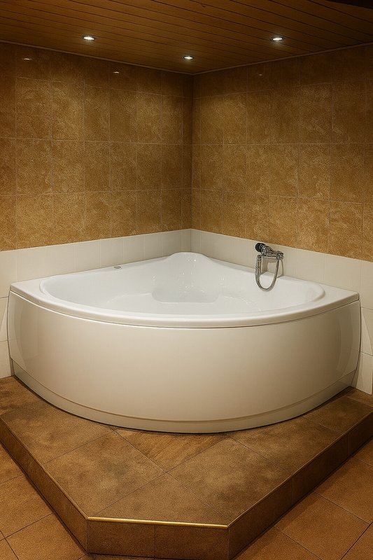 Баня классная, чисто, очень приятно в ней находиться. Джакузи вместительное. Много свободного пространства.